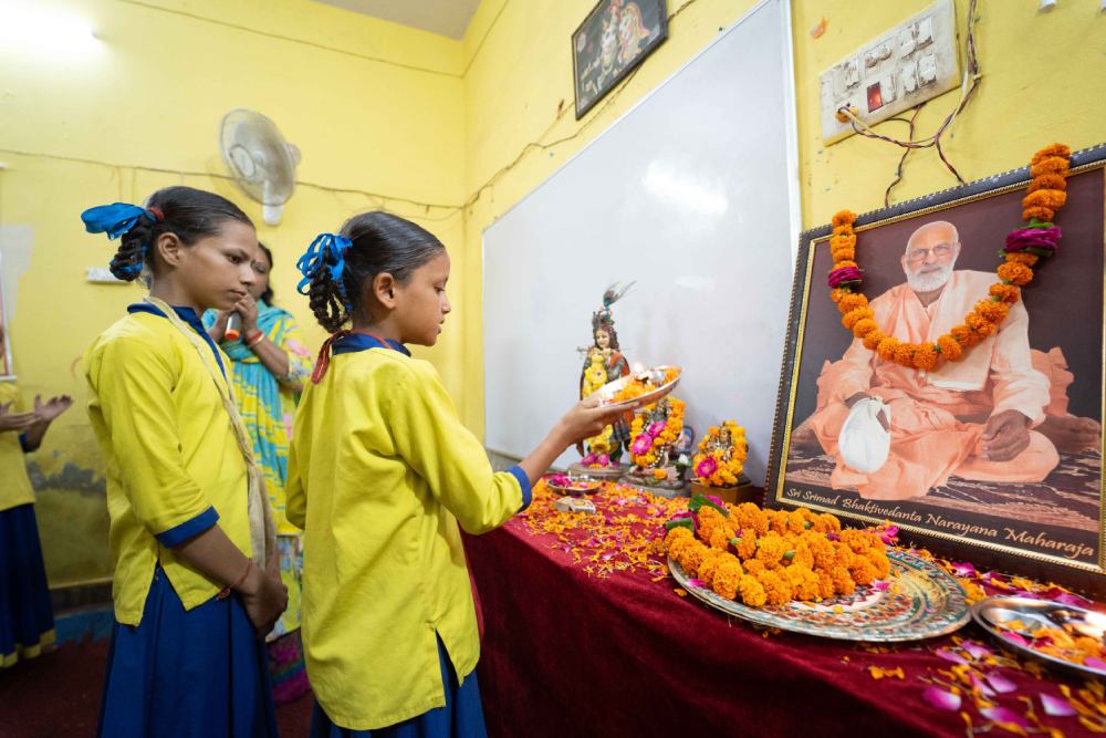 Braj Kishori is a humble yet heartfelt initiative by Shri Barsana Dham Gurukulam, rooted in the sacred land of Barsana. It was born from a simple yet powerful idea — that every girl, no matter her background, deserves a chance to learn, grow, and live with dignity.